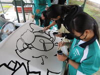 10月25日(土)につつじが丘公園で開催された「城沼アートパーク」に参加しました。「みんなでつくろうボートぬり絵!」におけるボートのデザインと、下絵付けを本校の3学年美術選択者で協力して行い、イベント当日には地域の小学生たちがその下絵に色を付けて、見事完成となりました!
