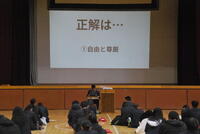 生徒会本部役員の生徒が調査、作成したプレゼンテーションをもとに、クイズなども交えながら発表を行いました。