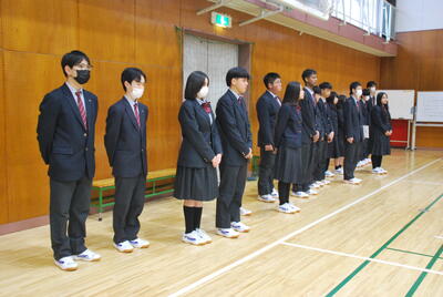 生徒会任命式では、新しく選出された17名の本部役員が任命されました。新生徒会会長は、「生徒のみなさんの意見を聞き、学校行事を盛り上げていきたい」と決意表明をしてくれました。 新しいリーダーたちを中心に、全校生徒で活気ある学校生活を築いてくれると確信しています。