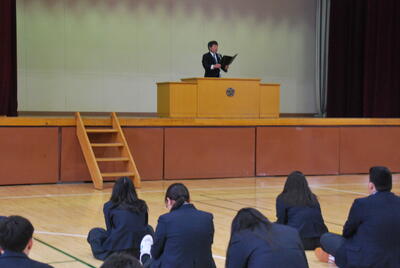 12月24日(水) 生徒会任命式、表彰伝達式、2学期終業式が行われました。