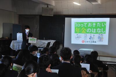 12月11日(木)の5限に、3学年は太田年金事務所から講師をお招きして「年金セミナー」を開催しました。年金について、なんとなく聞いたことがあるけどよくわかっていなかった生徒も多くいたようで、分かりやすい説明をみな真剣に聞いていました。卒業後、遅かれ早かれ支払うことになる年金について、理解を深めることができました。
